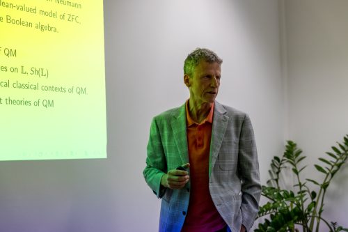 Dr Ryszard Kostecki z Uniwersytetu Gdańskiego i Bratysławy pokazał, w bardzo obszerny i estetyczny sposób, jak toposy (pewne naturalne kategorie matematyczne) mogą wspomóc nasze rozumienie relacji „klasyczne-kwantowe” w czasoprzestrzeni fizycznej. Struktura kraty właściwa bardziej dla mechaniki kwantowej jest teraz wyznaczona strukturą samej czasoprzestrzeni klasycznej.