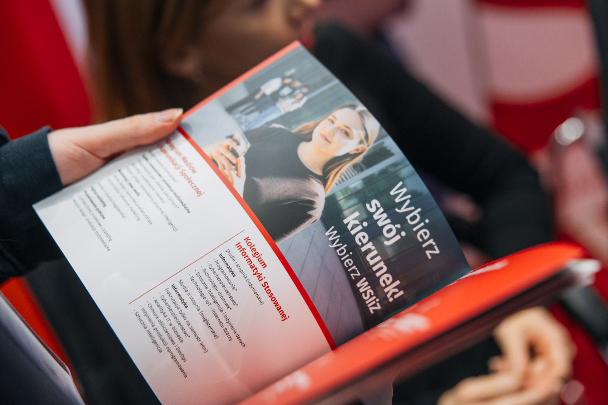 Pracownicy i studenci WSIiZ rozdawali materiały informacyjne oraz udzielali wskazówek dotyczących studiowania na naszej uczelni. Odpowiadali na wszystkie pytania dotyczące procesu rekrutacji i kształcenia, a także doradzali uczniom szkół średnich, jak wybrać najlepszy kierunek studiów dla siebie.