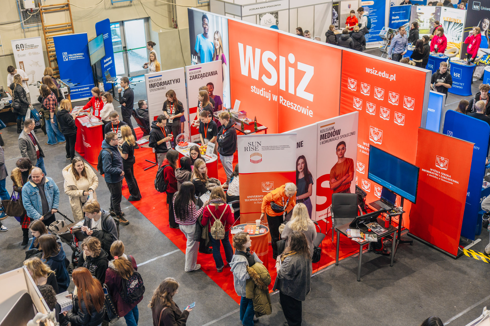 Nie da się przejść obojętnie obok stoiska Wyższej Szkoły Informatyki i Zarządzania w Rzeszowie. Na każdych targach, w których bierzemy udział, czerwone stoisko WSIiZ przyciąga jak magnes.
