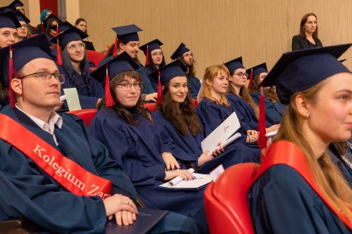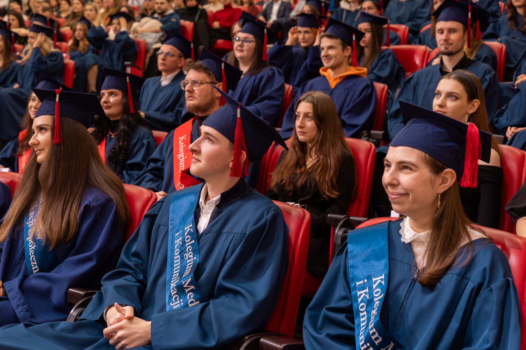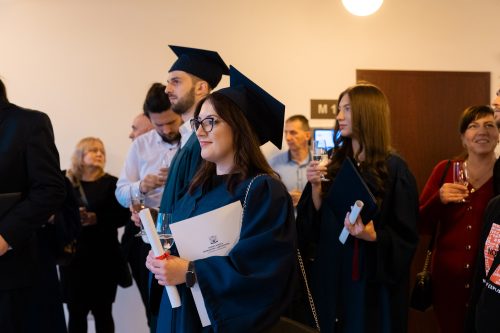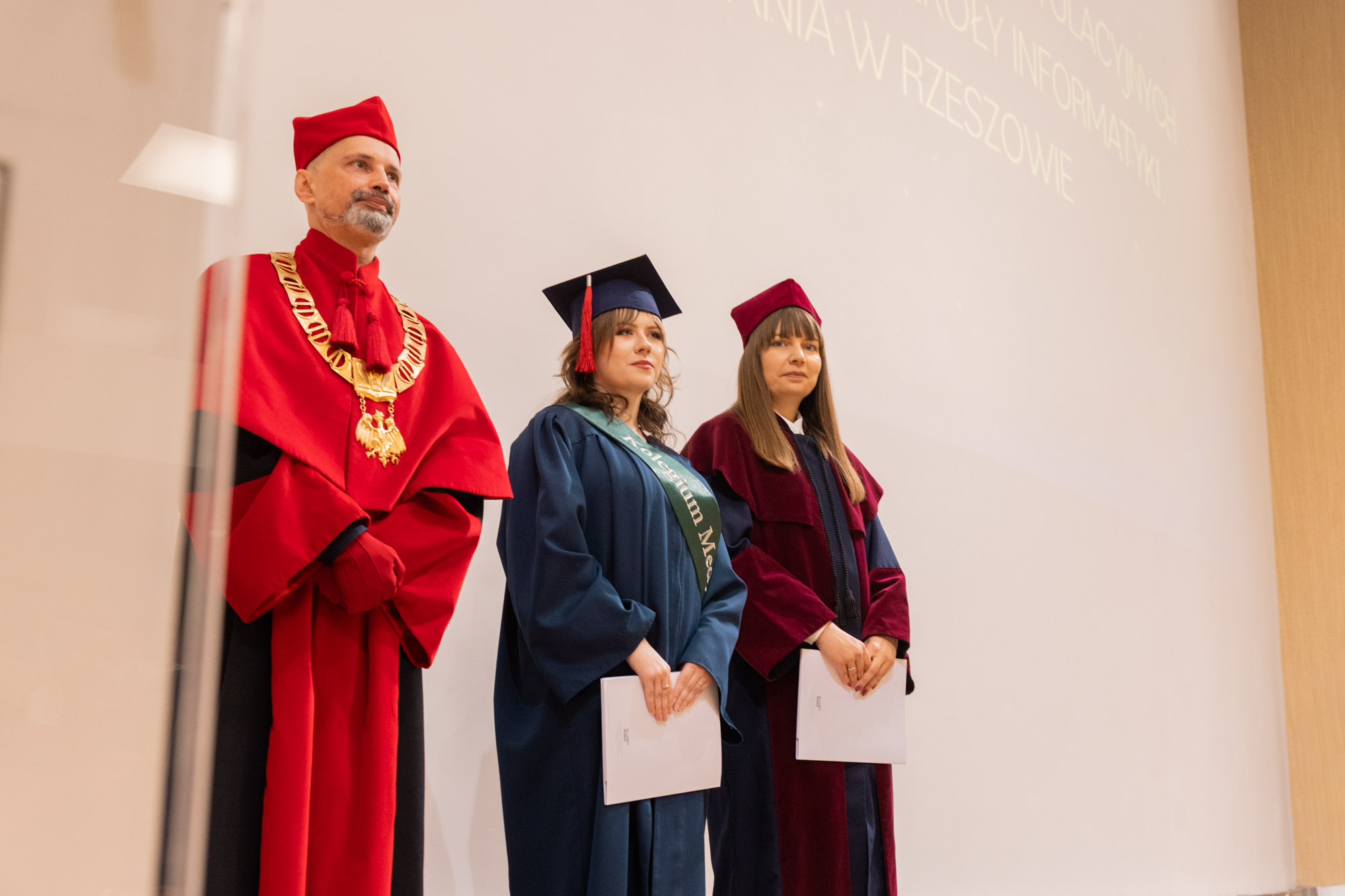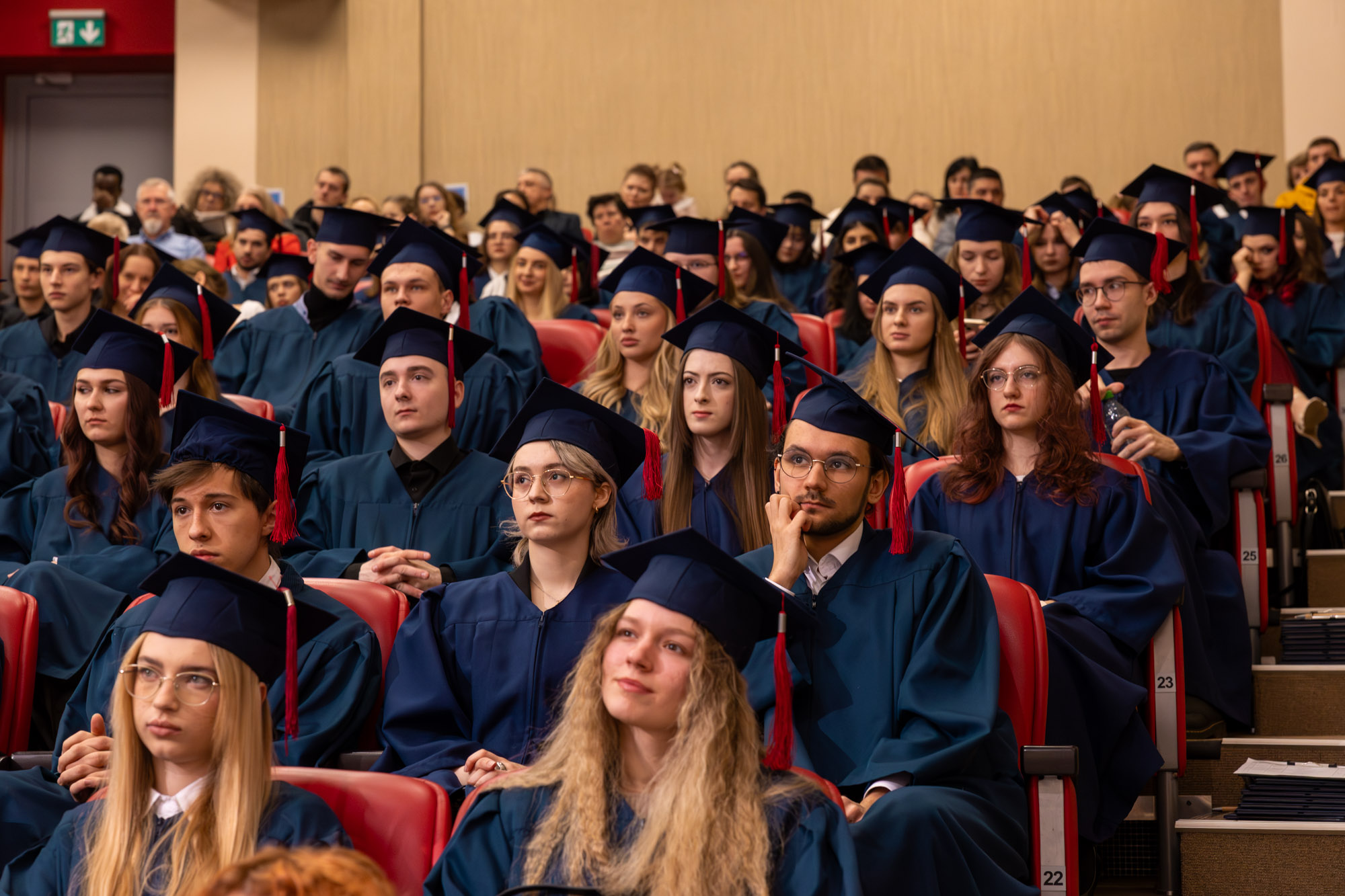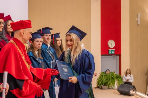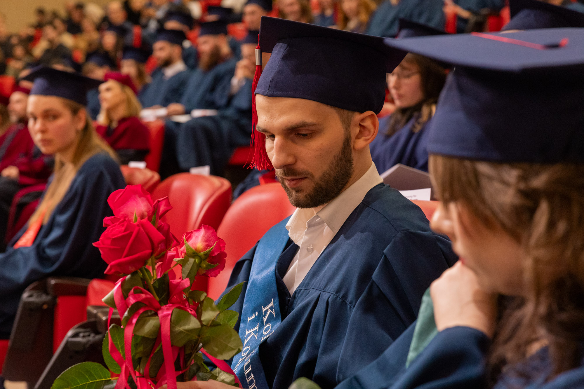 – Przetrwaliśmy najcięższe egzaminy, długie wieczory spędzone przy projektach, a także ogrom pracy naukowej. Możemy być z siebie naprawdę dumni, bo wchodziliśmy w mury tej uczelni, jako zestresowani maturzyści, a dziś stoimy tu jako specjaliści, ludzie z krytycznymi umysłami, obdarzeni nie tylko wiedzą, ale mam także nadzieję, życiową mądrością  – powiedziała w imieniu absolwentów I stopnia Gabriela Pękała.