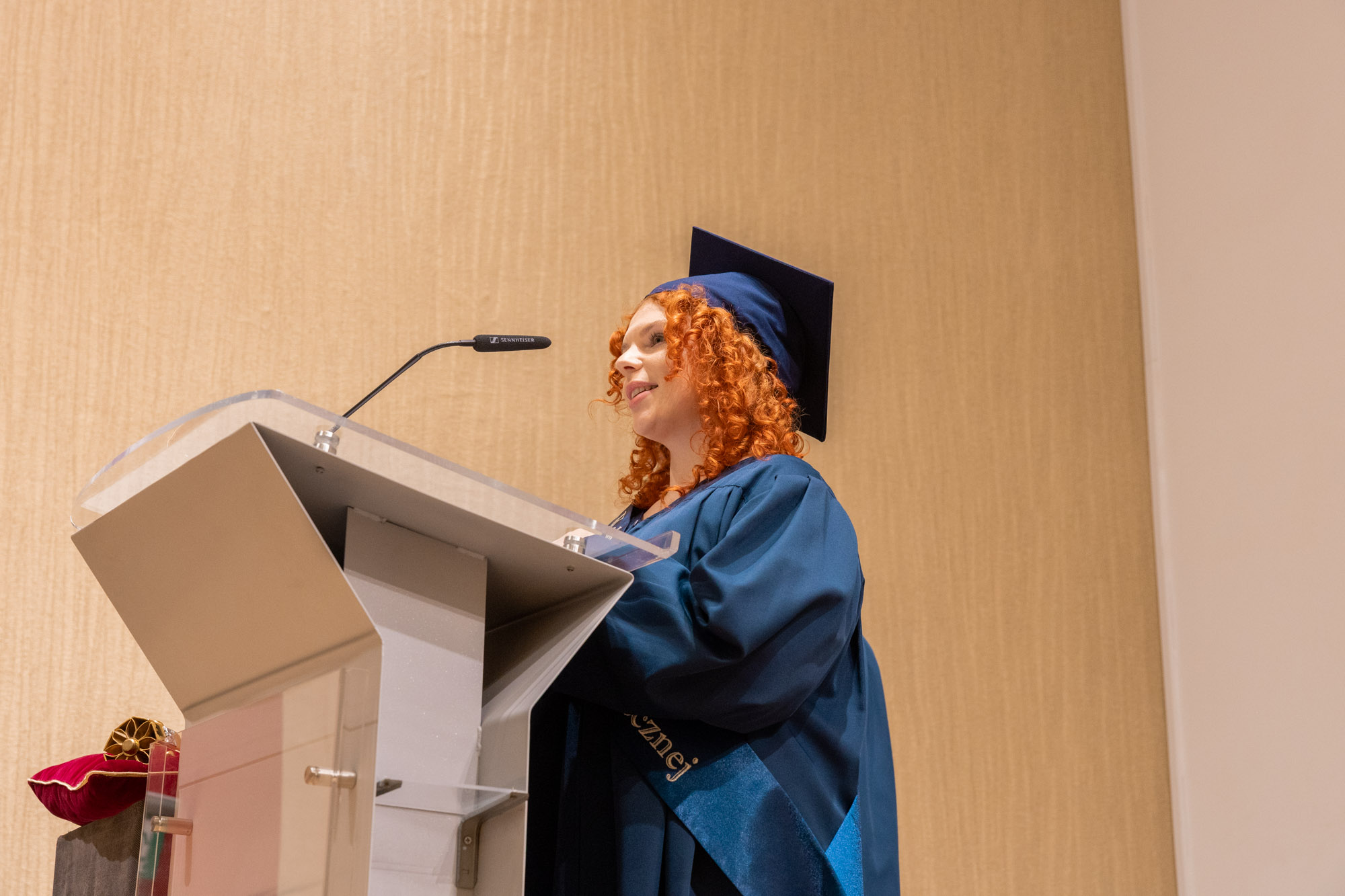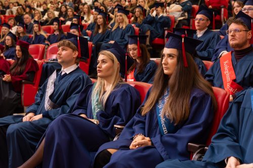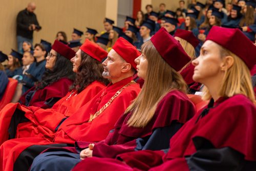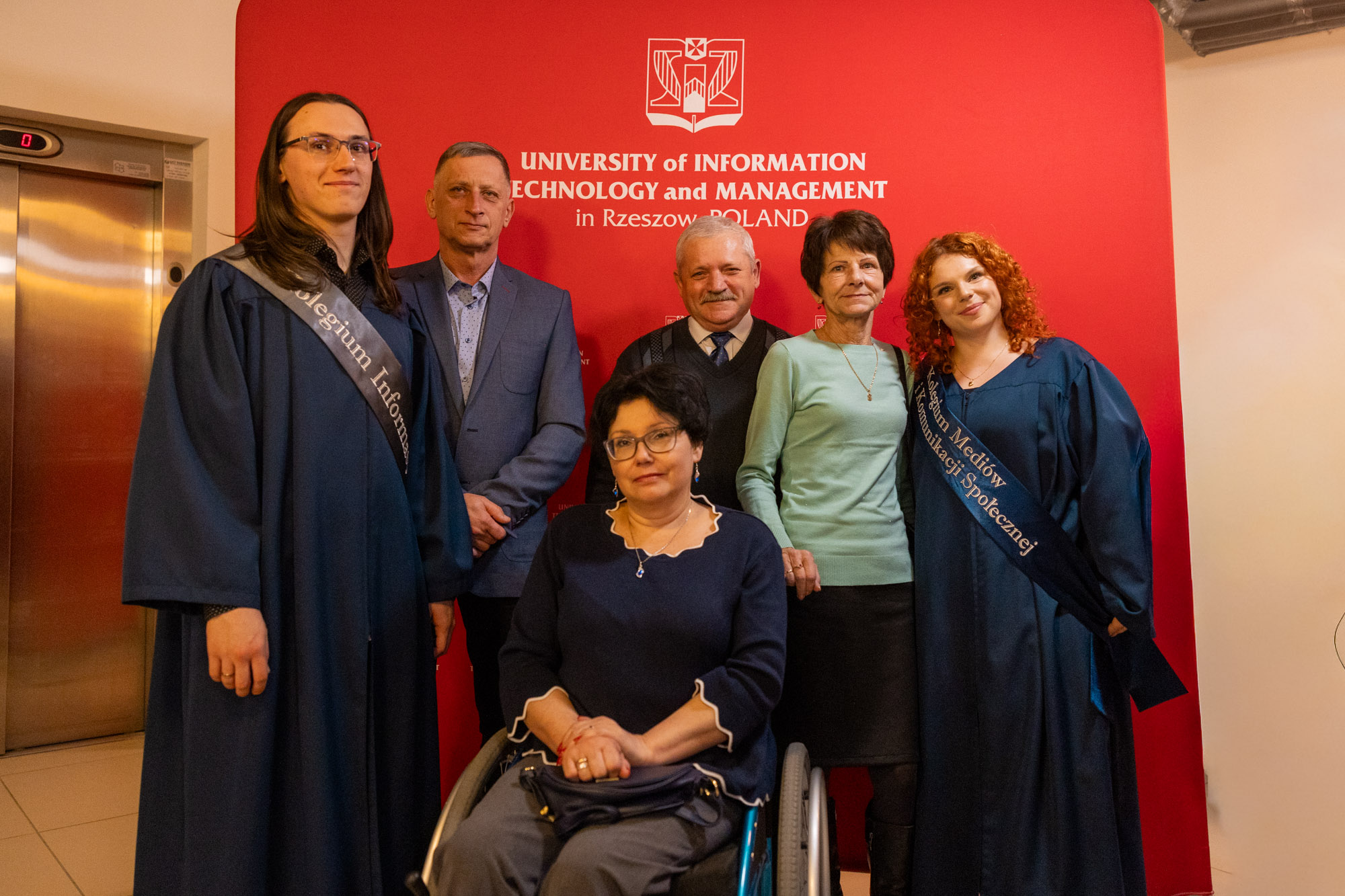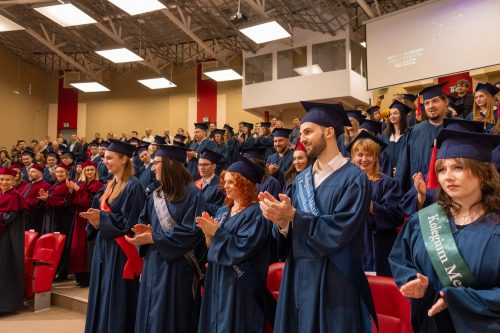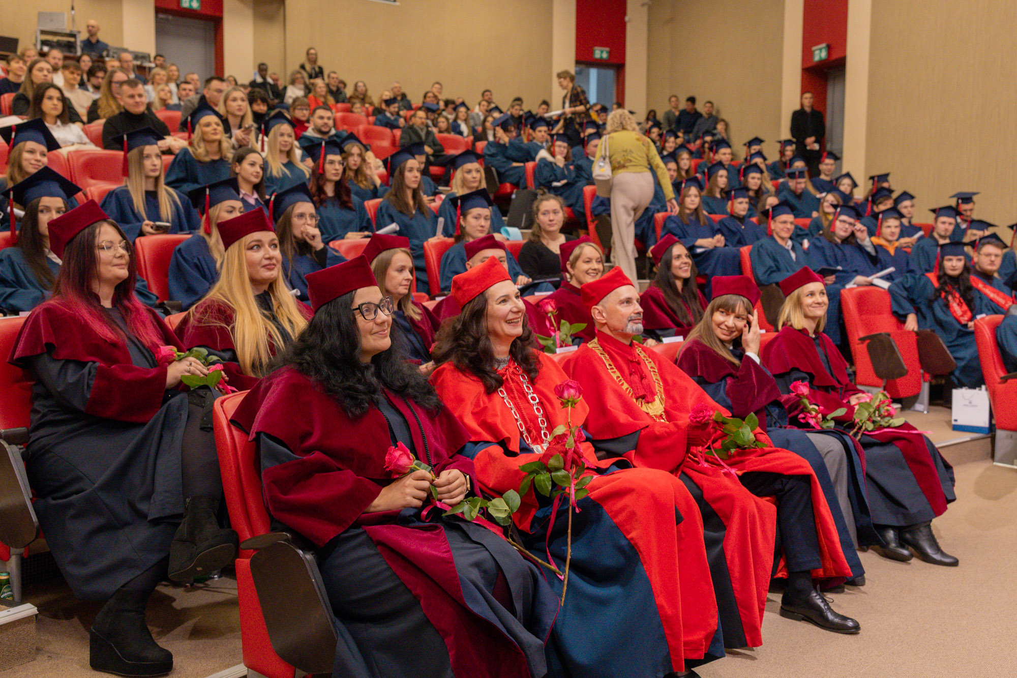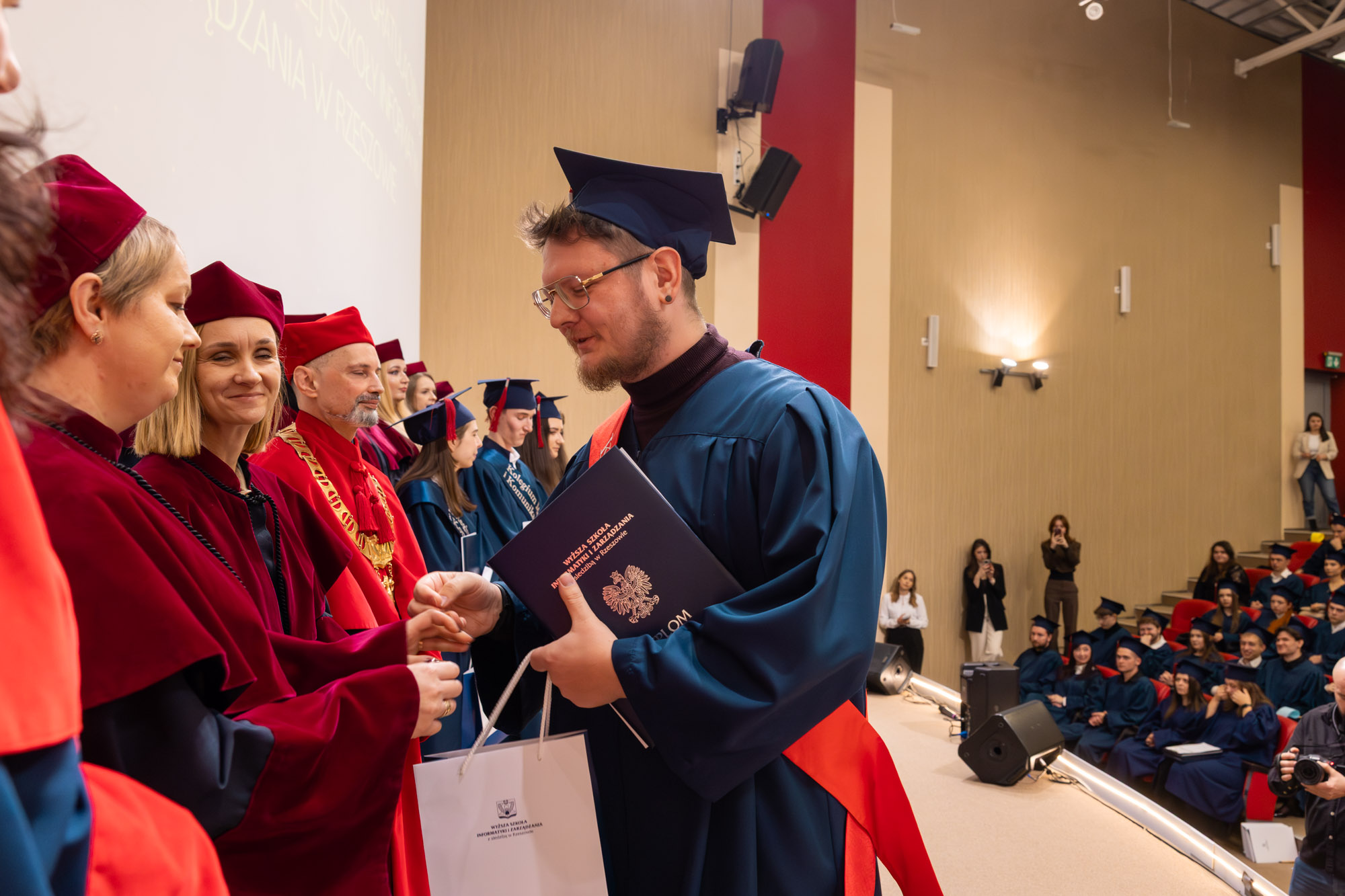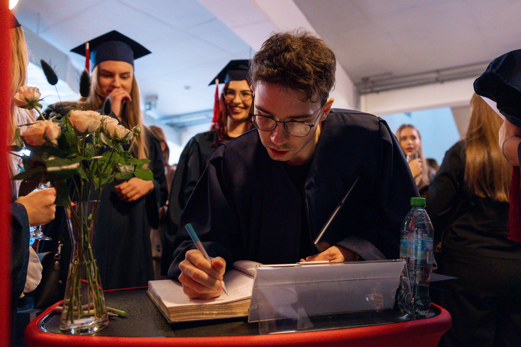 – Przetrwaliśmy najcięższe egzaminy, długie wieczory spędzone przy projektach, a także ogrom pracy naukowej. Możemy być z siebie naprawdę dumni, bo wchodziliśmy w mury tej uczelni, jako zestresowani maturzyści, a dziś stoimy tu jako specjaliści, ludzie z krytycznymi umysłami, obdarzeni nie tylko wiedzą, ale mam także nadzieję, życiową mądrością  – powiedziała w imieniu absolwentów I stopnia Gabriela Pękała.