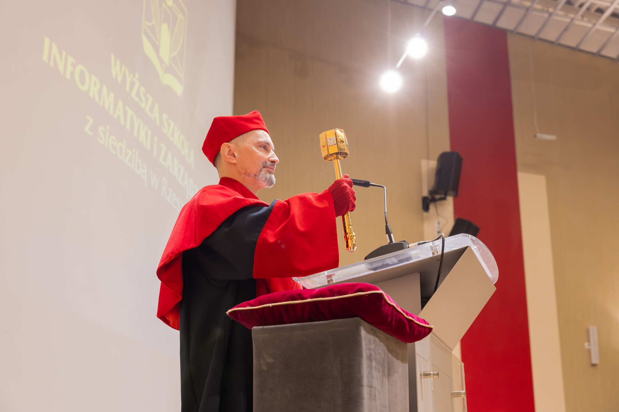 Tę wyjątkową uroczystość, która pod koniec listopada odbyła się w kampusie w Kielnarowej, rozpoczął Rektor dr hab. Andrzej Rozmus, prof. WSIiZ. – Dyplom, który uzyskaliście Państwo to sukces Wasz i całej uczelni. Zapracowali Państwo bardzo mocno na ten sukces, swoją ciężką pracą, często też kosztem życia prywatnego i wyrzeczeń finansowych. Mamy tego świadomość – powiedział podczas Graduacji Rektor WSIiZ.