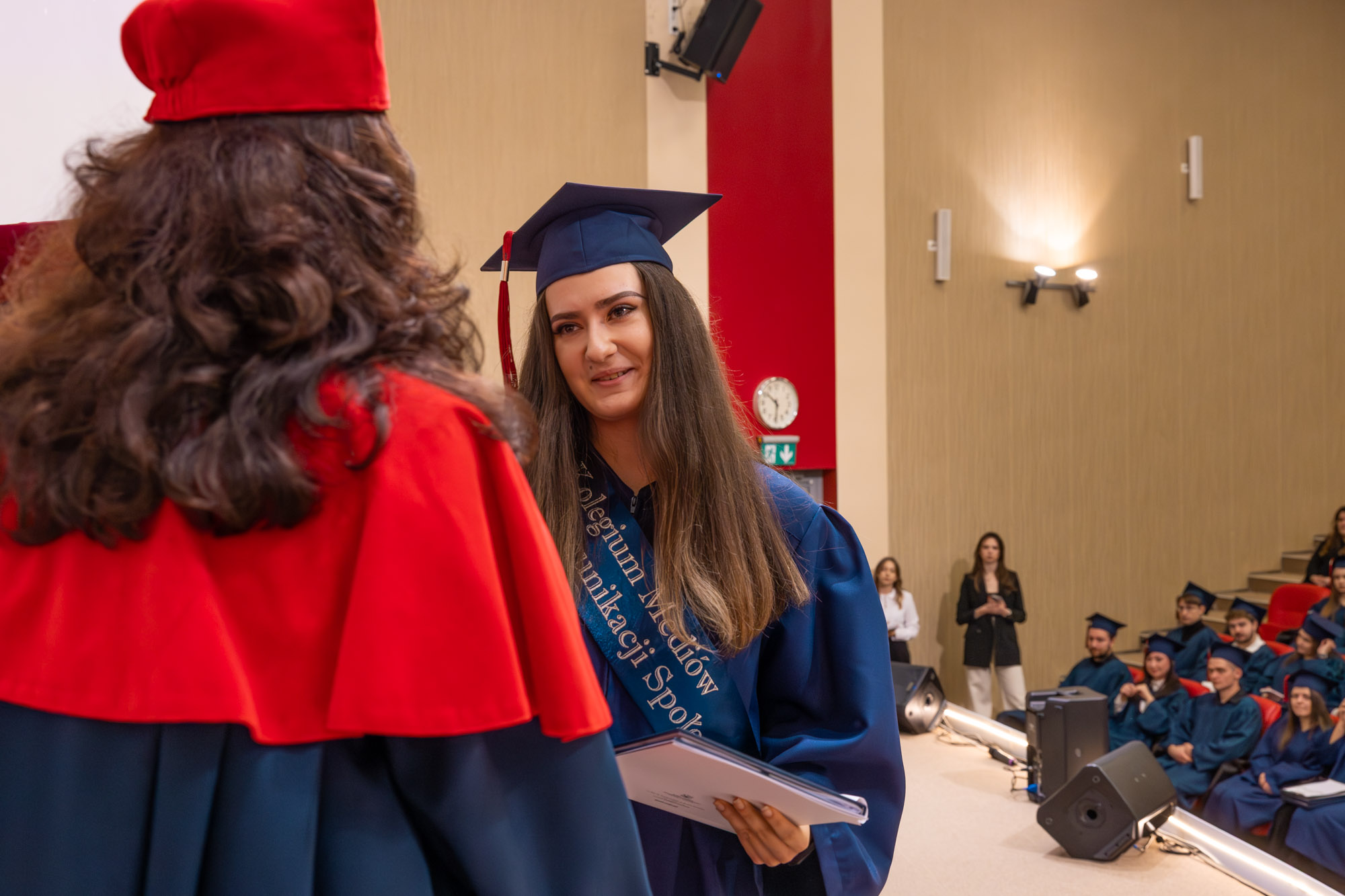 Oficjalną część Graduacji zakończyło rozdanie dyplomów na scenie wraz z indywidualnymi gratulacjami od władz rektorskich i dziekańskich oraz wspólna sesja fotograficzna.