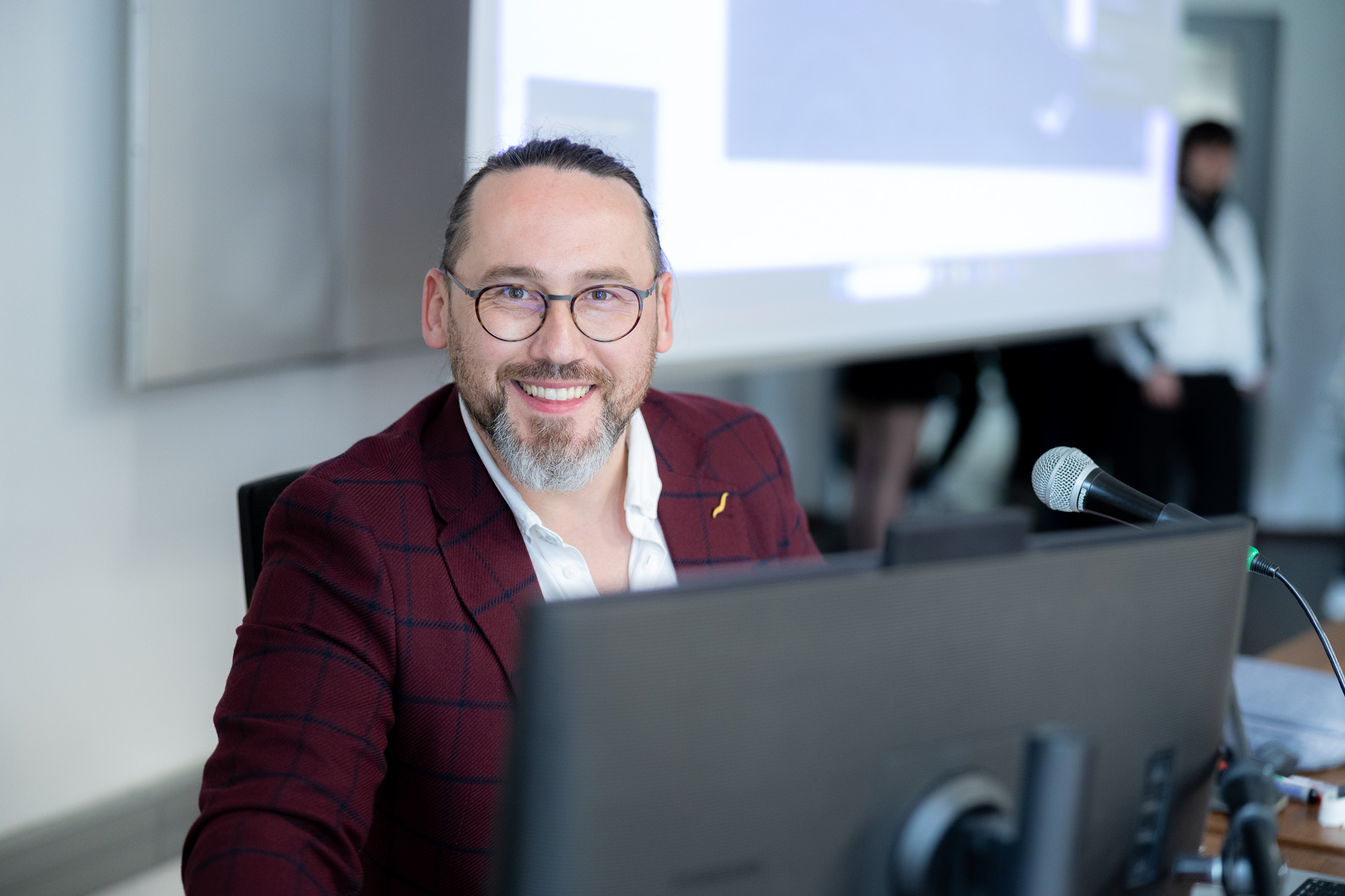 Podczas wykładu uczestnicy mieli okazję poznać pełny proces powstawania produktu cyfrowego – od pierwszego briefu i pracy z klientem, przez etap projektowania, aż po testy i wdrożenie. Prelegent podkreślił znaczenie uporządkowanego procesu projektowego, który pozwala ograniczyć chaos, usprawnia komunikację w zespole oraz umożliwia podejmowanie trafnych decyzji biznesowych.