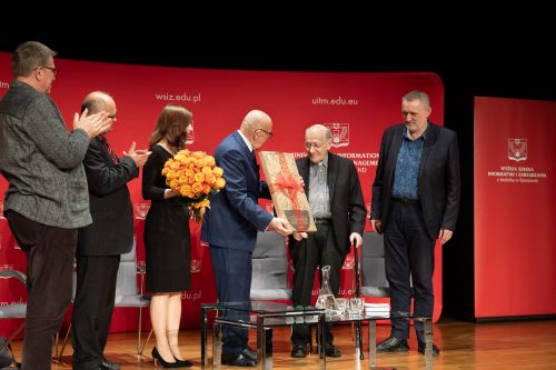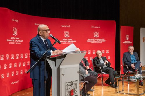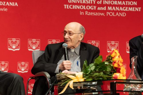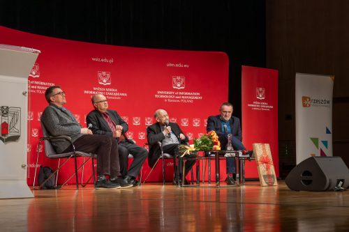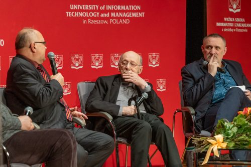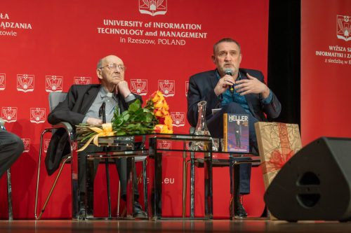 Debatę poprowadził Wojciech Bonowicz. Zgromadzonych gości przywitał dr Wergiliusz Gołąbek, Wiceprezydent WSIiZ, który wspólnie z dr Małgorzatą Gosek, Rektorką WSIiZ, wręczyli ks. prof. Hellerowi kwiaty i prezent w związku z Jubileuszu jego 90. urodzin.