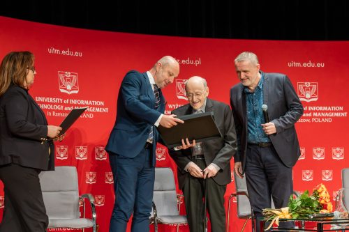 Publiczność zgromadzona w Filharmonii Podkarpackiej skierowała do ks. prof. Hellera wiele pytań o sztuczną inteligencję. Profesor odpowiedział w charakterystyczny dla siebie sposób: