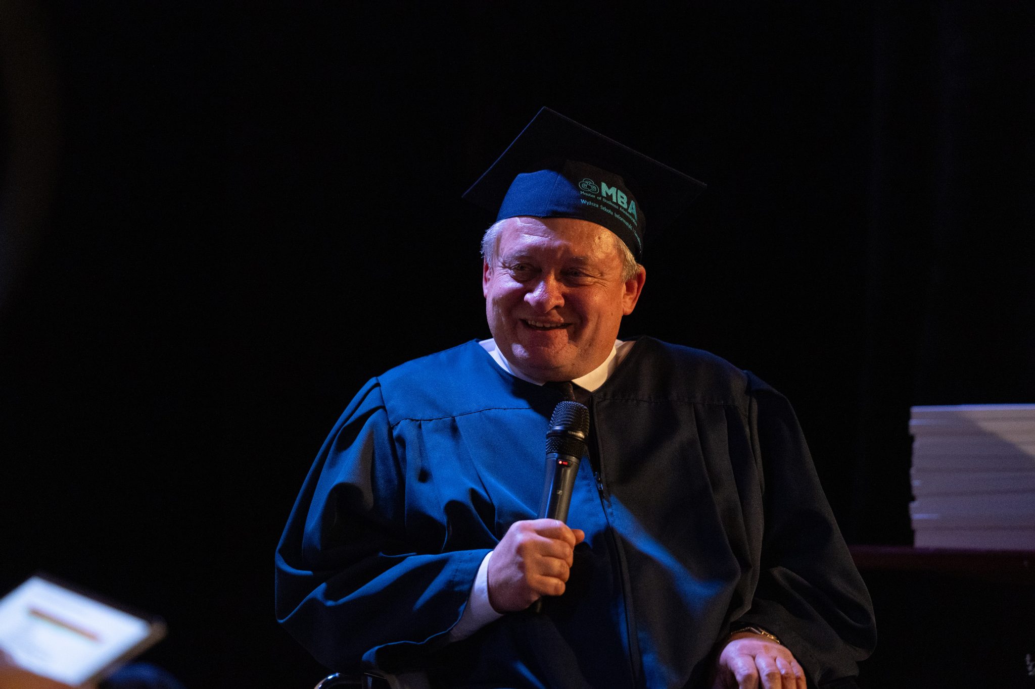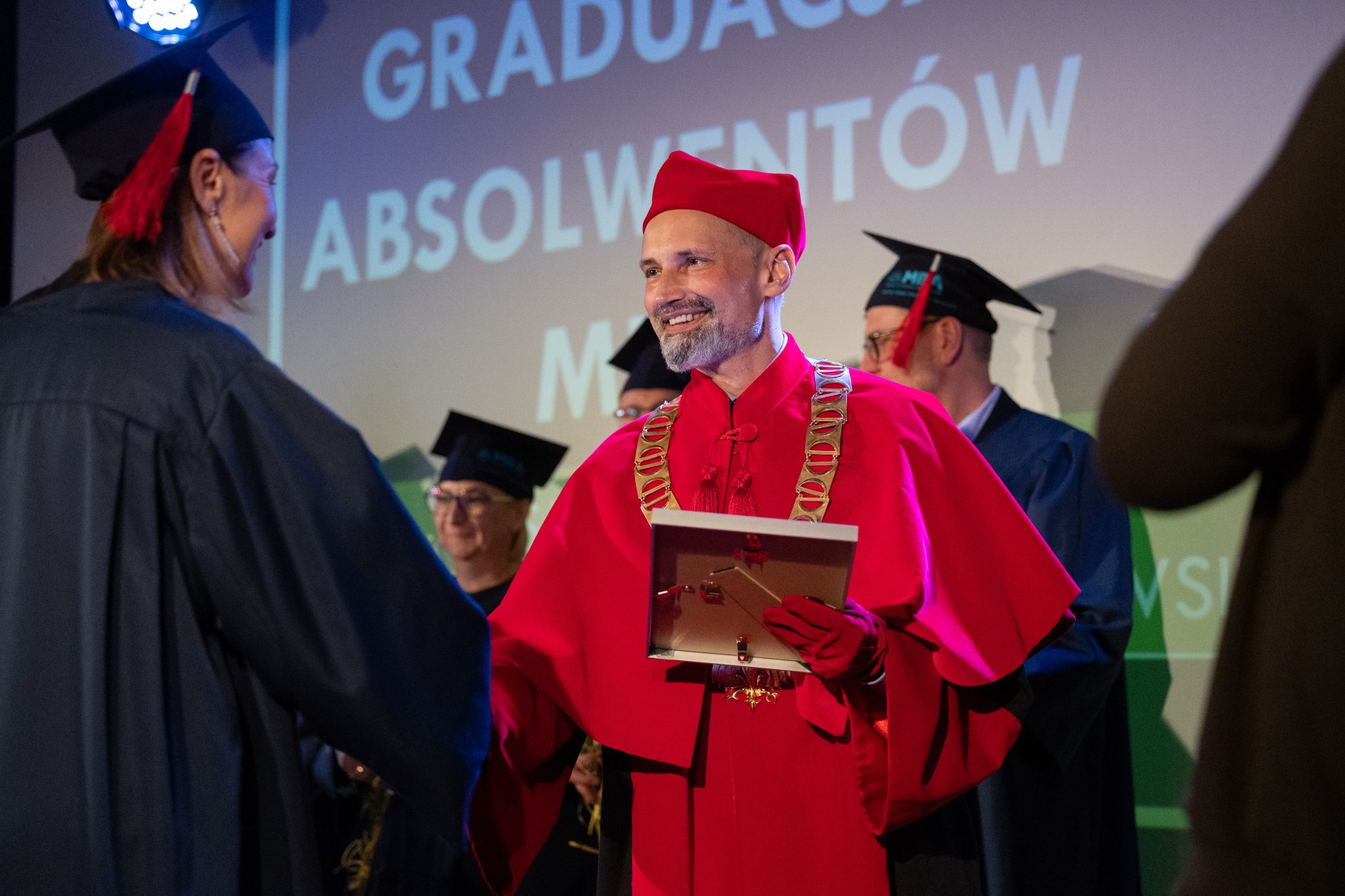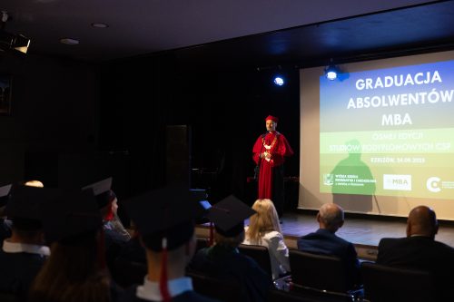 Uroczyste wręczenie dyplomów 8. edycji MBA dla słuchaczy Centrum Studiów Podyplomowych WSIiZ odbyło się 24 września. Absolwentów w togach i biretach oraz ich bliskich przywitał rektor dr hab. Andrzej Rozmus, prof. WSIiZ.