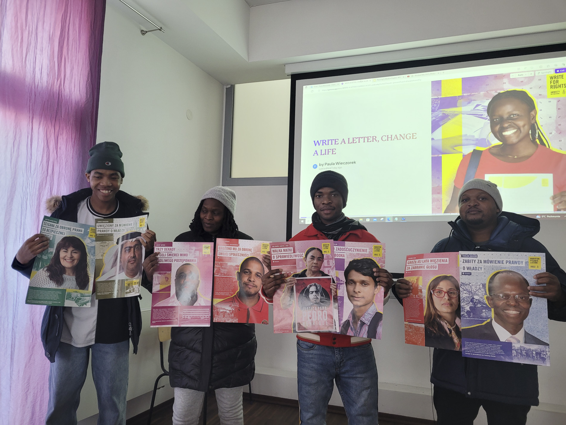 Podczas maratonu studenci i wykładowcy WSIiZ oraz nauczyciele oraz uczniowie z I Liceum Ogólnokształcącego im. Króla Władysława Jagiełły z Dębicy połączyli swoje siły, aby wesprzeć osoby, które doświadczyły niesprawiedliwości. Wśród nich znalazły się takie osoby, jak Justyna Wydrzyńska, działaczka walcząca o prawa reprodukcyjne kobiet w Polsce, oraz Rita Karasartova, dążąca do zapewnienia dostępu do czystej wody jako podstawowego prawa człowieka. Wsparcie zostało również wyrażone dla Rocky Meyersa, Afroamerykanina niesłusznie skazanego na śmierć w USA. Historie tych osób stały się mocnym wezwaniem do działania.