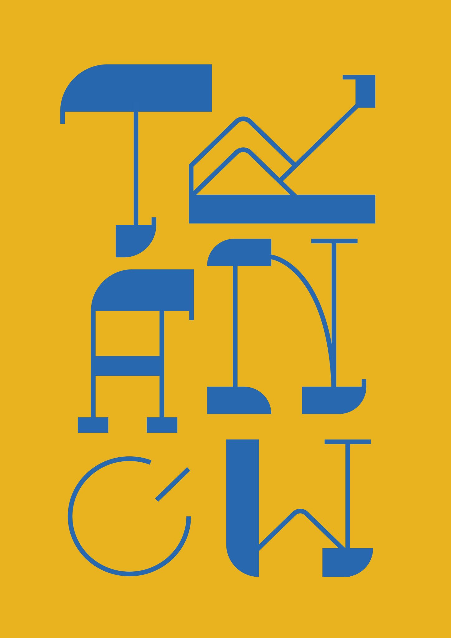 W tym plakacie chciałam pokazać surowość i prostotę formy. Skupiłam się na mocnych kształtach liter i ich ciężarze wizualnym, tak żeby całość była konkretna i trochę „twarda” w odbiorze. Zależało mi na tym, żeby plakat bardziej się oglądało i czuło niż czytało, a forma sama budowała charakter pracy – tak swój plakat opisuje Katarzyna Panek.