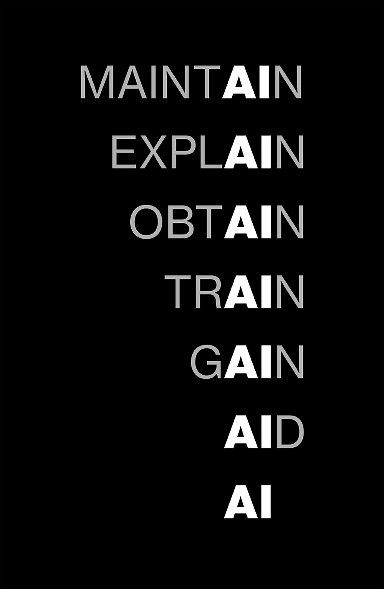 Plakat został zbudowany z wyrazów związanych z nauką, które zawierają w sobie człon „AI”. Z czasem słowa te zanikają, tracą znaczenie, a w centrum pozostaje jedynie „AI”. Praca porusza temat wypierania tradycyjnej nauki przez sztuczną inteligencję oraz zanikania samodzielnego zdobywania wiedzy – mówi Zuzanna Poplewska.