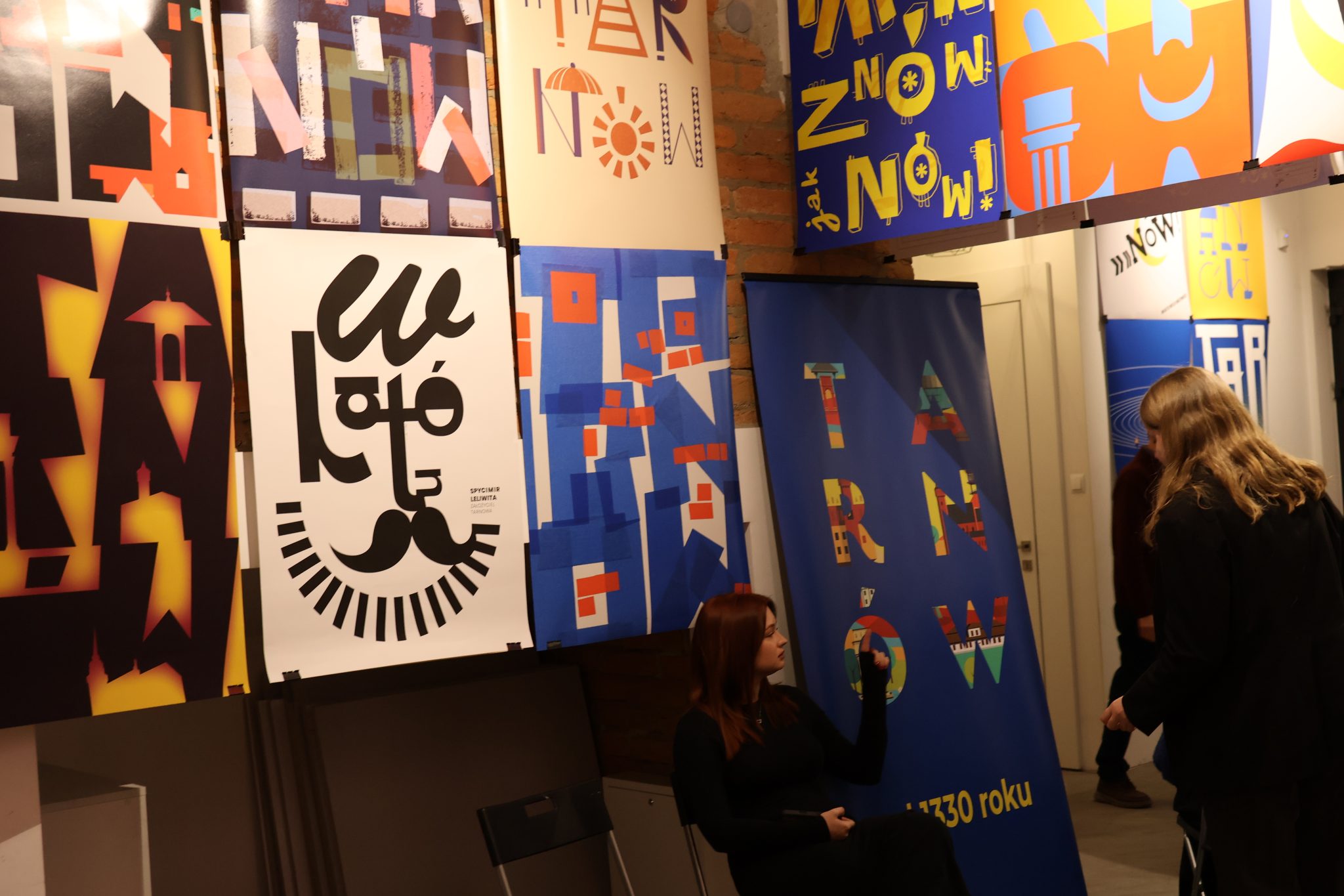 Plakat „Tarnów” prezentuje nazwę miasta za pomocą autorskiego, abstrakcyjnego fontu. Unikalna forma symbolizuje nowoczesność, innowacyjność i potencjał. W poszczególnych literach można dostrzec subtelne nawiązania do współczesnych symboli, takich jak ikona „włącznika” czy strzałka skierowana ku górze. Te elementy, inspirowane między innymi designem widocznym na nowych autobusach miejskich, dodatkowo podkreślają dynamiczny charakter miasta. Połączenie intensywnego koloru niebieskiego z tłem w odcieniu pomarańczowo-żółtym stanowi odwołanie do oficjalnych barw miasta Tarnowa – wyjaśnia autorka plakatu Izabela Miodunka.
