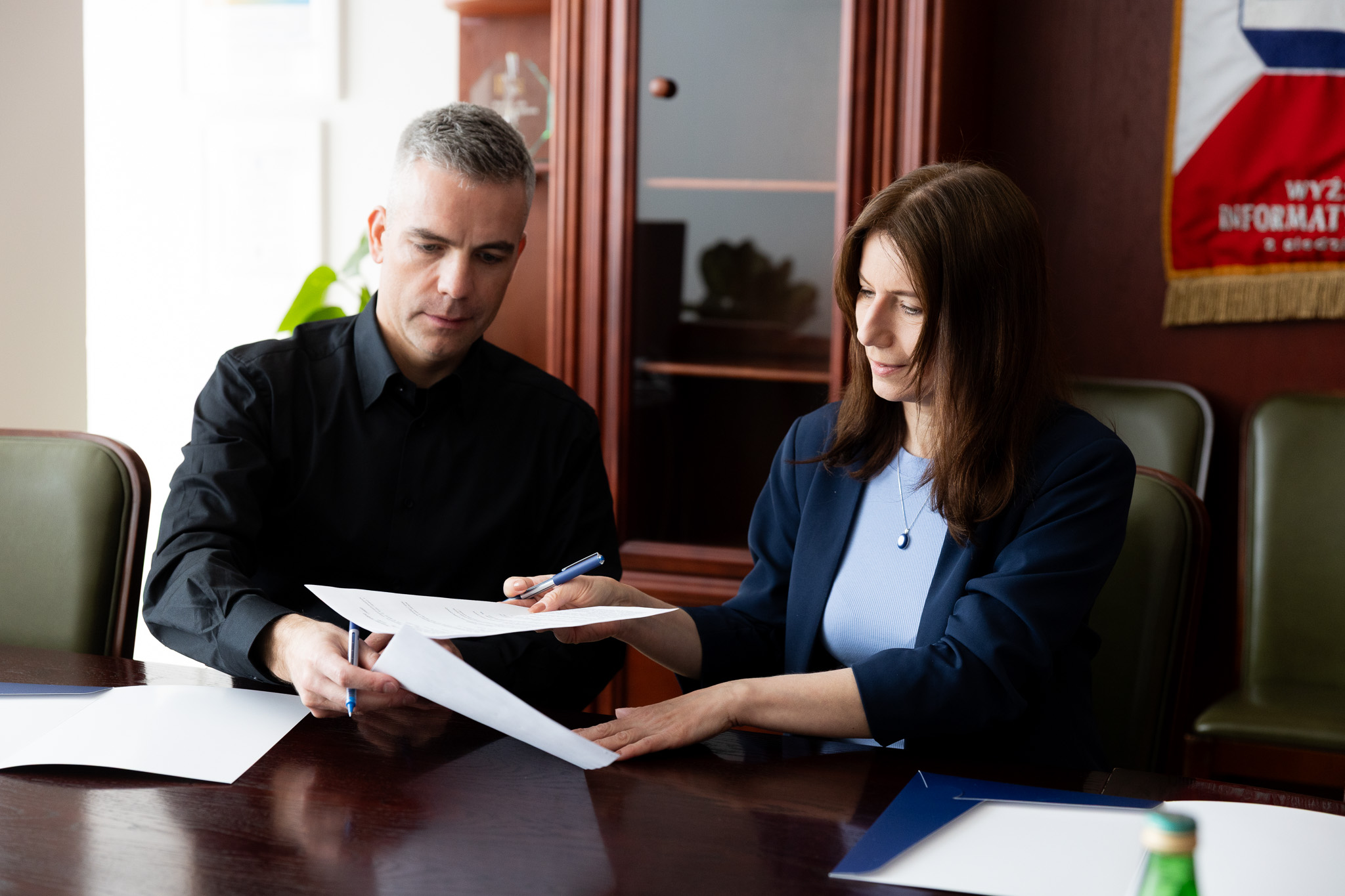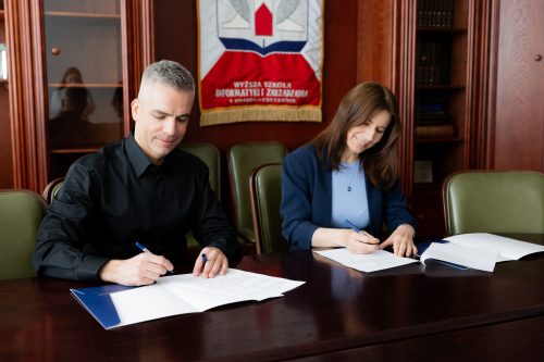 Umowę o współpracy podpisali dr Małgorzata Gosek, rektorka WSIiZ oraz Filip Więcek, właściciel firmy TABUN. Przy podpisaniu umowy obecne były także: dr Barbara Przywara, prorektorka ds. Nauczania, dr Joanna Świętoniowska, dziekan Kolegium Zarządzania oraz dr Kateryna Lysenko-Ryba, prodziekan Kolegium Zarządzania ds. kierunku Logistyka.
