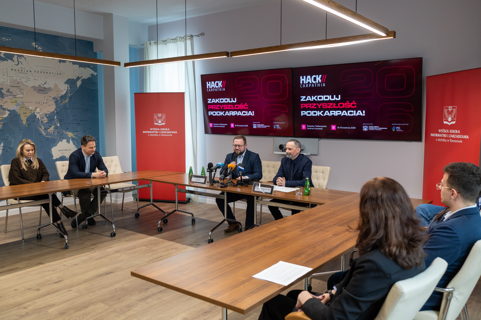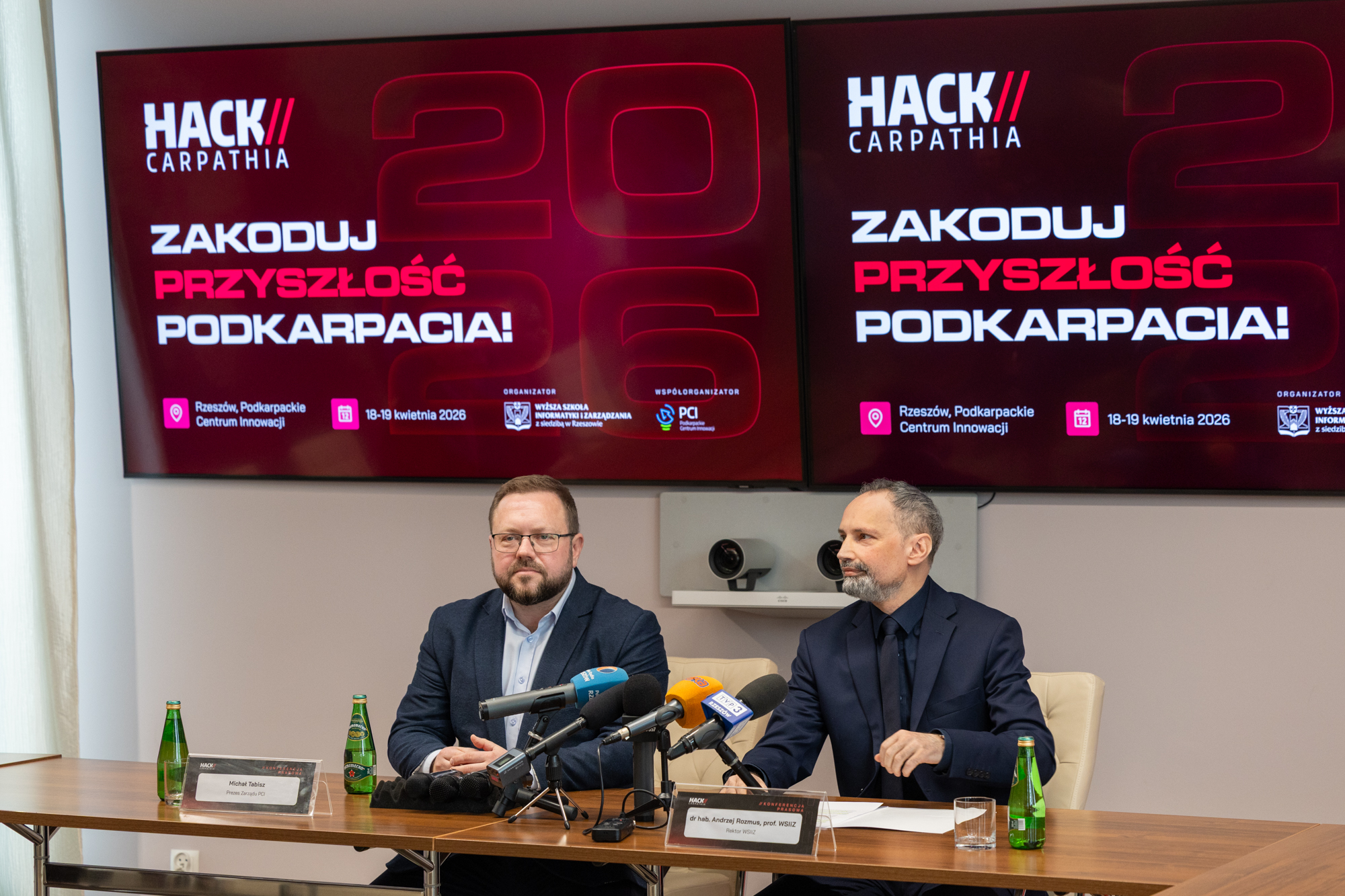 Na konferencji prasowej, która odbyła się w Wyższej Szkole Informatyki i Zarządzania w Rzeszowie – Rektor WSIiZ oraz Prezes Podkarpackiego Centrum Innowacji, czyli twórcy i organizatorzy największego hackathonu w Rzeszowie – zapowiedzieli III edycję Hackarpathia 2026. HackCarpathia już zapisało się na hackathonowej mapie Polski. Jednocześnie jest hackathonem o wyjątkowej oprawie.