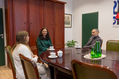 Po wakacyjnej przerwie wróciła „Rektorska kawa z Absolwentem”. Tym razem gościnią rektora dr. hab. Andrzeja Rozmusa, prof. WSIiZ, oraz dr Barbary Przywary, prorektorki ds. nauczania była Marta Jamróz-Kulig, fullstack developer w jednej z rzeszowskich firm, która tworzy oprogramowanie dla branży HoReCa.