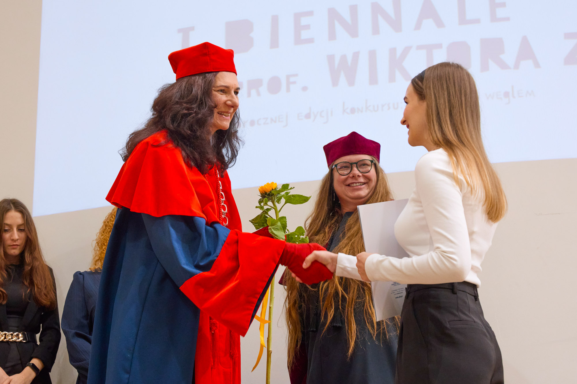 Wyróżnienia honorowe otrzymały: Julia Rylewicz oraz Helena Wróbel. Zwycięzcą konkursu I Binnale im prof. Wiktora Zina został: Kacper Łogonowicz. Wszyscy studiują na kierunku Grafika komputerowa i produkcja multimedialna.