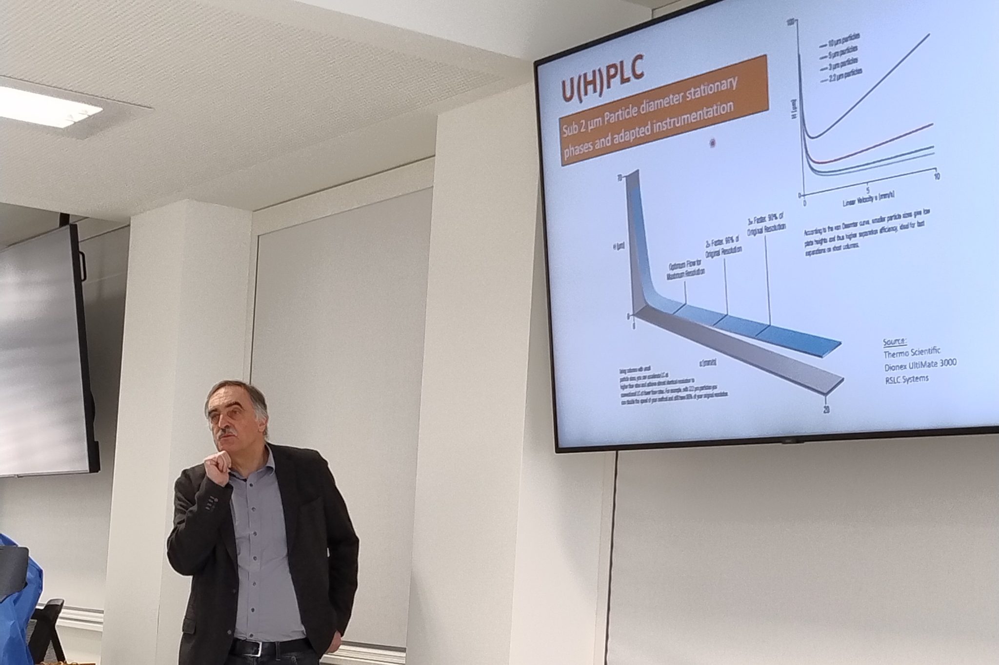 Program warsztatów, które odbywały się w dniach 24-27 marca br., koncentrował się na zaawansowanych metodach chromatograficznych i spektrometrycznych wykorzystywanych w analizie ekstraktów roślinnych oraz substancji pochodzenia naturalnego o potencjale farmaceutycznym. W trakcie spotkań szczegółowo omówiono techniki stosowane w badaniach fitochemicznych, w tym m.in. LC-PDA-MS, HRMS-MS oraz GC-MS, które stanowią kluczowe narzędzia w identyfikacji i charakterystyce związków biologicznie aktywnych obecnych w surowcach roślinnych.