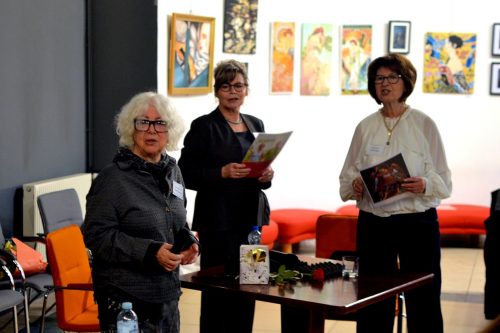 Opiekunem grupy malarskiej jest dr hab. Anna Baran. Podczas wernisażu podzieliła się z gośćmi historią początków pracy ze słuchaczkami. Wyjaśniła, że choć panie miały już wcześniejsze doświadczenia z malarstwem, to aby wnieść umiejętności na wyższy poziom, zaczęły od lekcji rysunku. Dopiero stopniowo, krok po kroku, przeszły do bardziej zaawansowanych wyzwań. Pierwszym z nich było malowanie martwej natury, potem portrety i obrazy wzorowane na dziełach mistrzów. Pani Annie zależało na tym, aby prace uczestniczek nie były wiernymi kopiami znanych dzieł, lecz indywidualnymi interpretacjami, co sprawia, że każda z nich ma własny charakter i emocje.
