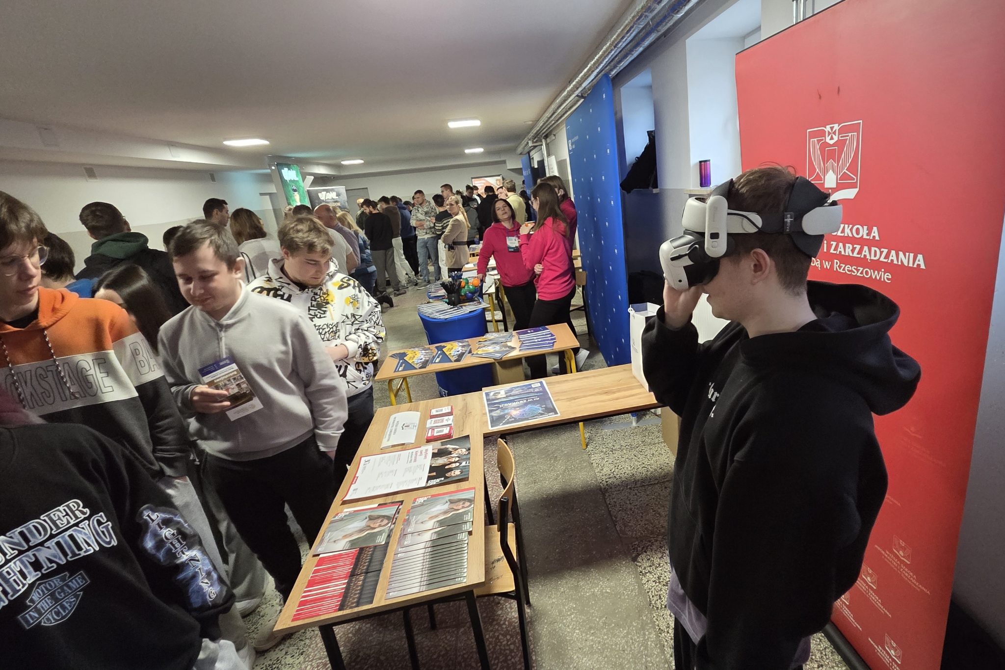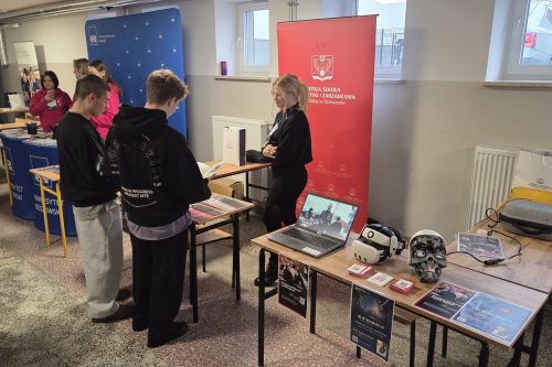 Przez ponad dwie godziny uczniowie aktywnie odwiedzali stoiska uczelni, w tym stoisko WSIiZ. Naszą uczelnię reprezentowali studenci kierunku Informatyka: Jakub Kołodziejczyk i Aleksandra Bojda. Z dużym zaangażowaniem opowiadali o studenckiej codzienności, projektach realizowanych w ramach zajęć oraz możliwościach, jakie daje studiowanie we WSIiZ.