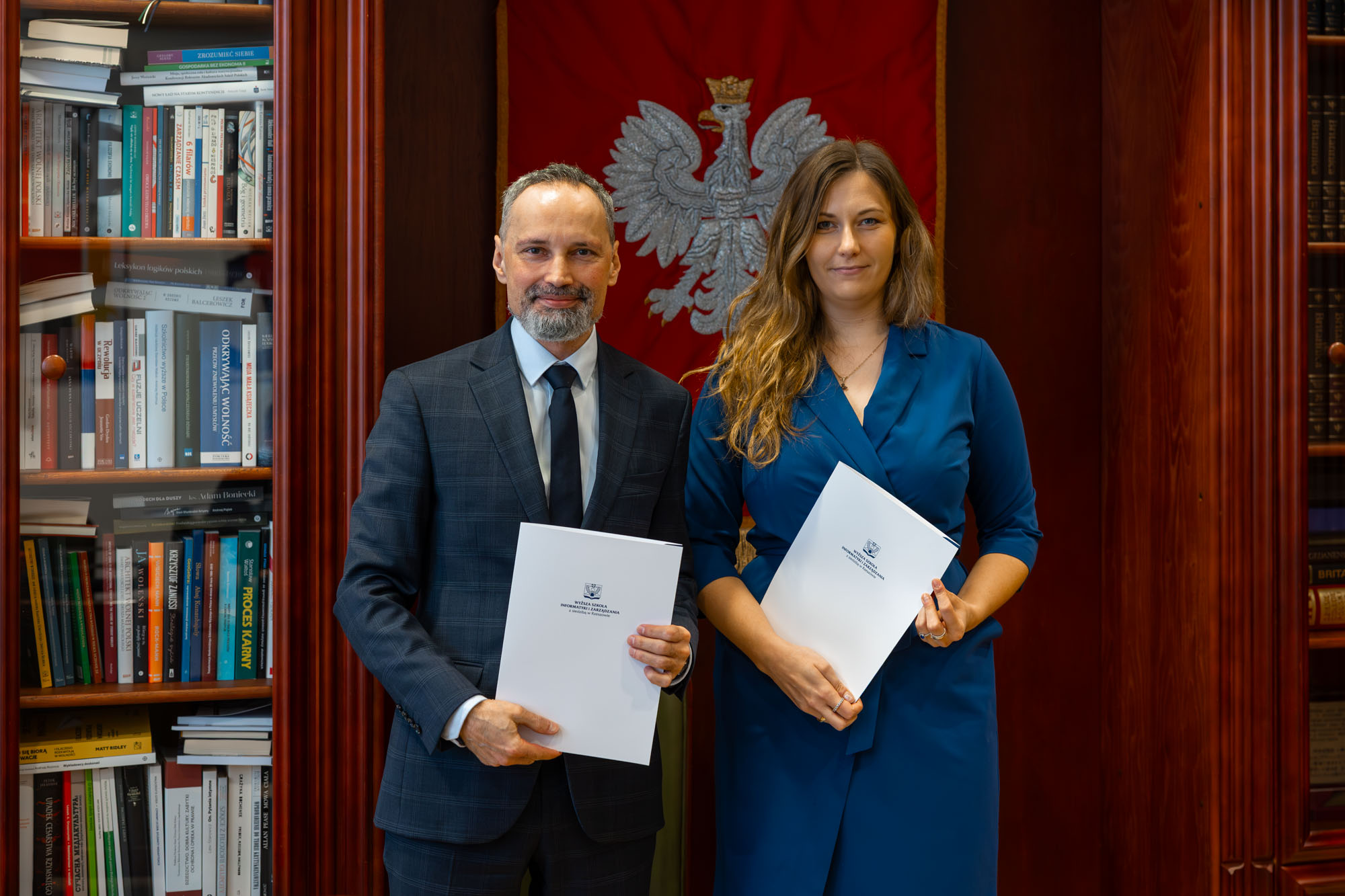 Umowę podpisali Rektor dr hab. Andrzej Rozmus, prof. WSIiZ oraz Aneta Łobodzińska, prezeska Centrum Naukowo-Technologicznego Systemów Bezzałogowych w obecności m.in. dr Barbary Przywary, prorektorki ds. nauczania oraz dra inż. Janusza Kolbusza, prodziekana Kolegium Informatyki Stosowanej.