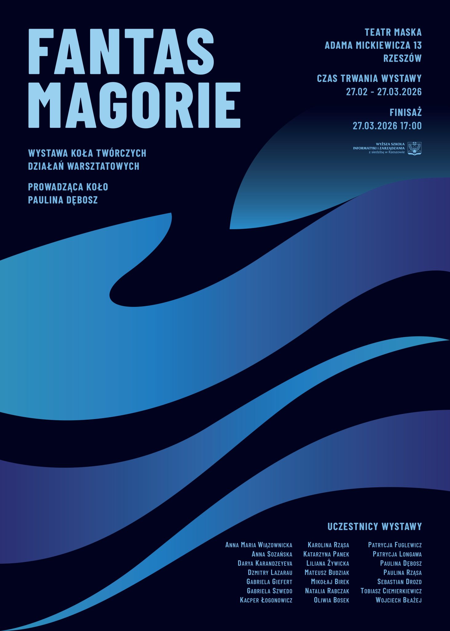 „Fantasmagorie” to tytuł wystawy zbiorowej prezentowanej w przestrzeni ekspozycyjnej teatru Maska w Rzeszowie. Prace naszych artystów będzie można oglądać od 27 lutego do 27 marca. Ostatni dzień wystawy to także uroczysty finisaż, który rozpocznie się o godz. 17:00.