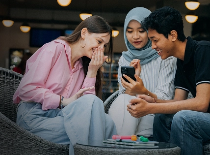 Jesteśmy w gronie Uniwersytetów Europejskich. Studia to nie tylko książki, to ludzie i podróże! U nas skorzystasz programów wymiany studenckiej Sunrise i Erasmus+, a angielskiego nauczysz się przy kawie, gadając z ekipą z całego świata. Miksujemy kultury, języki i energię z 4 kontynentów.