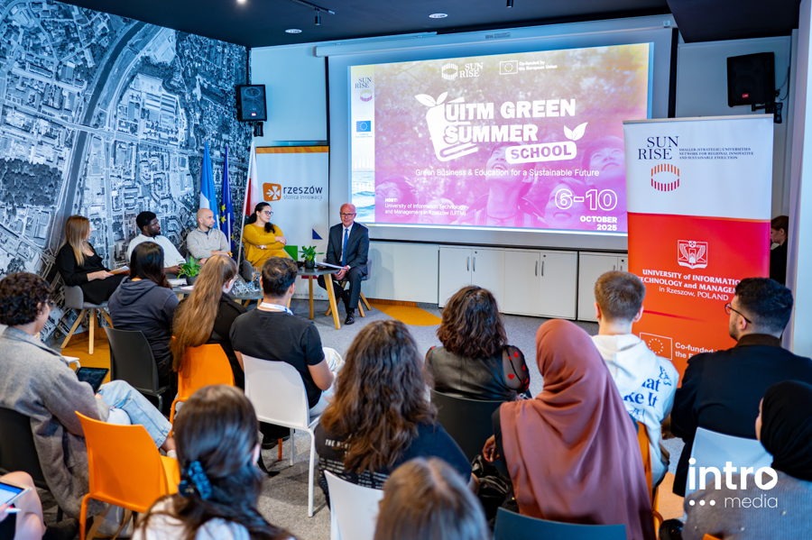 Kampus Wyższej Szkoły Informatyki i Zarządzania między 6 a 10 października zamienił się w przestrzeń pełną pomysłów, rozmów i współpracy. Przez pięć dni studenci i wykładowcy z kilku krajów oraz eksperci z regionalnego ekosystemu, pracowali razem w ramach SUNRISE Green Summer School, międzynarodowego wydarzenia poświęconego zielonej przedsiębiorczości, edukacji przyszłości i odpowiedzialnemu przywództwu. Zdjęcia: Monika Zimirowicz i Adam Janusz.